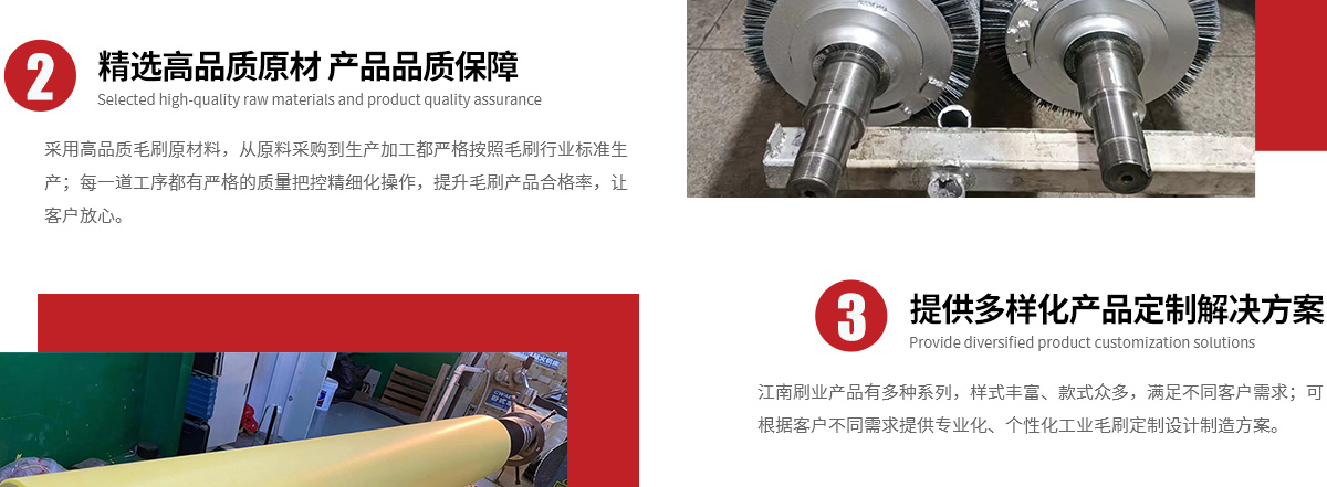 潛山江南刷業(yè)有限公司生產(chǎn)汽車噴涂鴕鳥毛毛刷,鋁板脫脂線輥刷,鋁板去氧化皮輥刷,淬火爐爐內(nèi)輥,無紡布擠油輥擠干輥,無紡布真空吸油輥,電加熱打孔針輥等,以及各類涂油滾&膠輥&海綿滾&不織布輥、密封刷&鋼刷式密封、輸送帶刷式清掃器&牛體刷、鋼絲刷條&鋼絲板刷、PVC毛刷板&尼龍毛刷條、打孔鋁針輥&打孔銅針輥、圓形滾刷毛刷輥系列、圓形鋼刷&鋼絲刷輥、拋光毛刺磨料刷、試管刷&管道刷等各類刷制品。江南刷業(yè)注重...